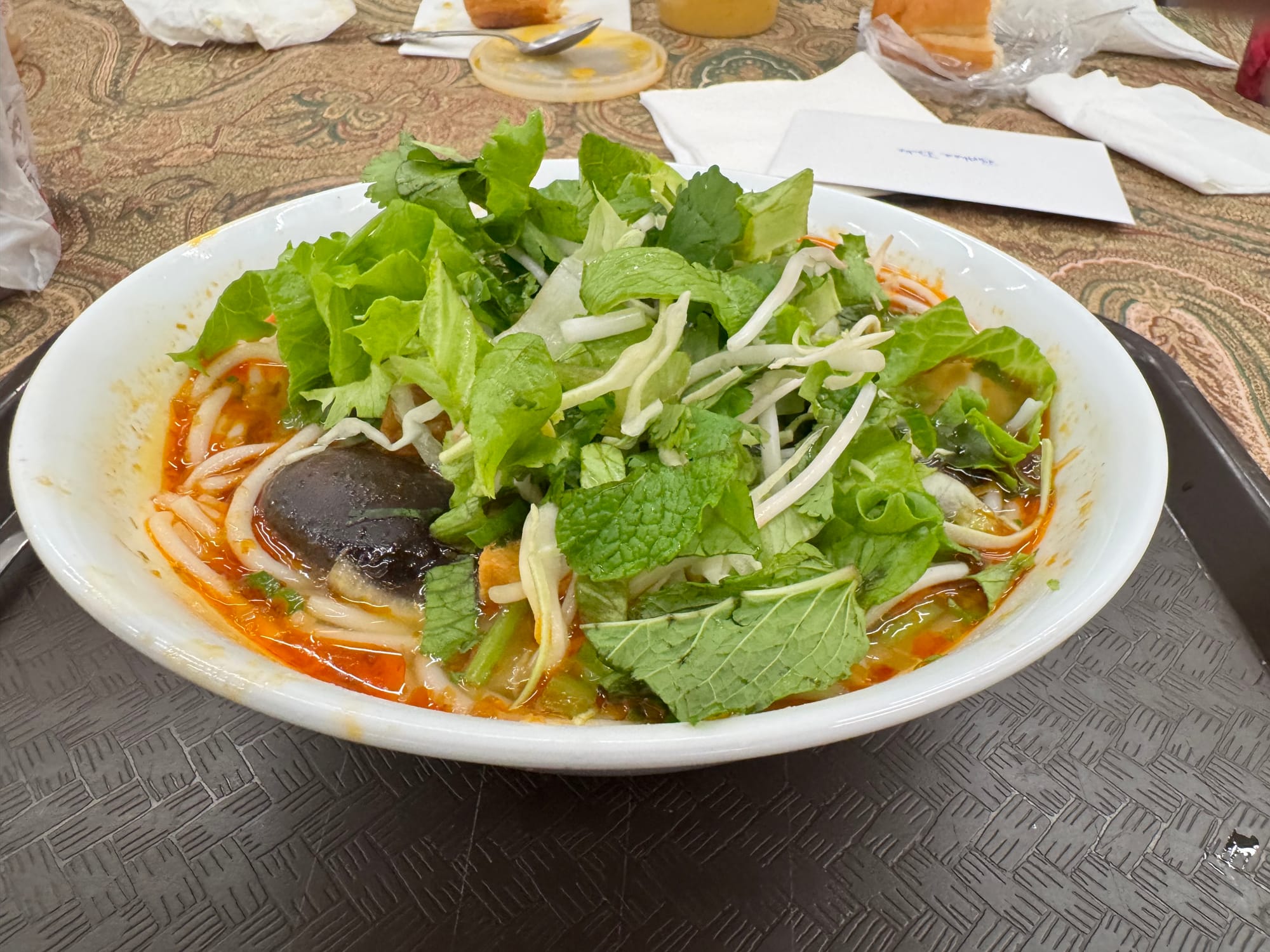 - Pho—Vietnam’s classic noodle soup. The version we had was vegetarian, but still deeply flavored and satisfying.