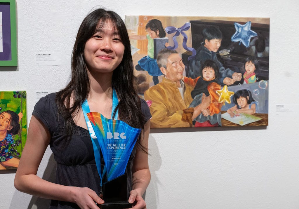 Sophia Zhu took top honors in the 2026 REAL-LIFE EXPERIENCE High School Exhibition, a juried show at Baton Rouge Gallery that gathers student work from across East Baton Rouge Parish. The award was announced on April 1 during the gallery’s First Wednesday opening reception, which was attended by more than 200.